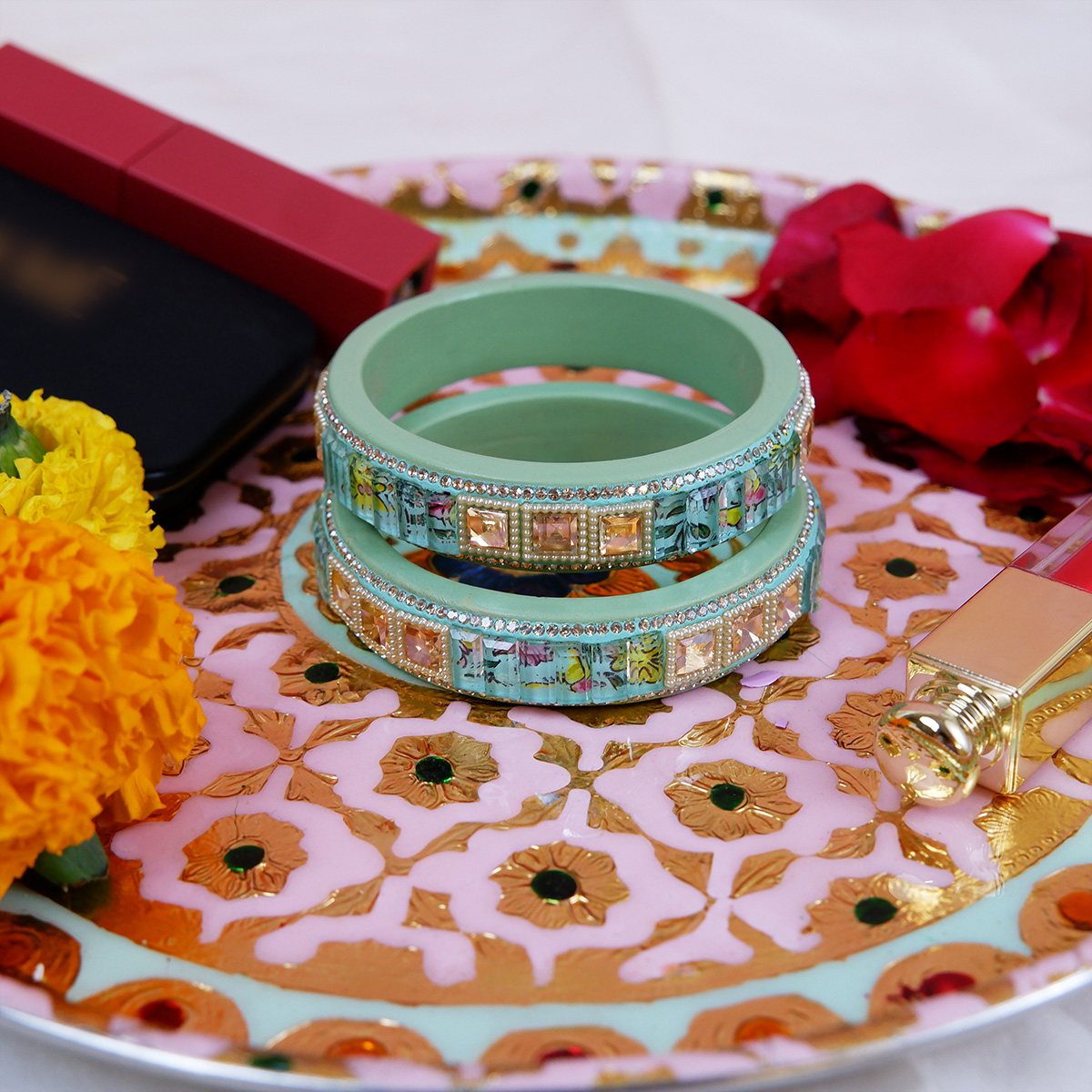 • Handle with care to protect the kundan stones and crystal detailing.