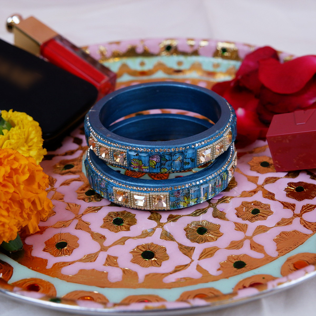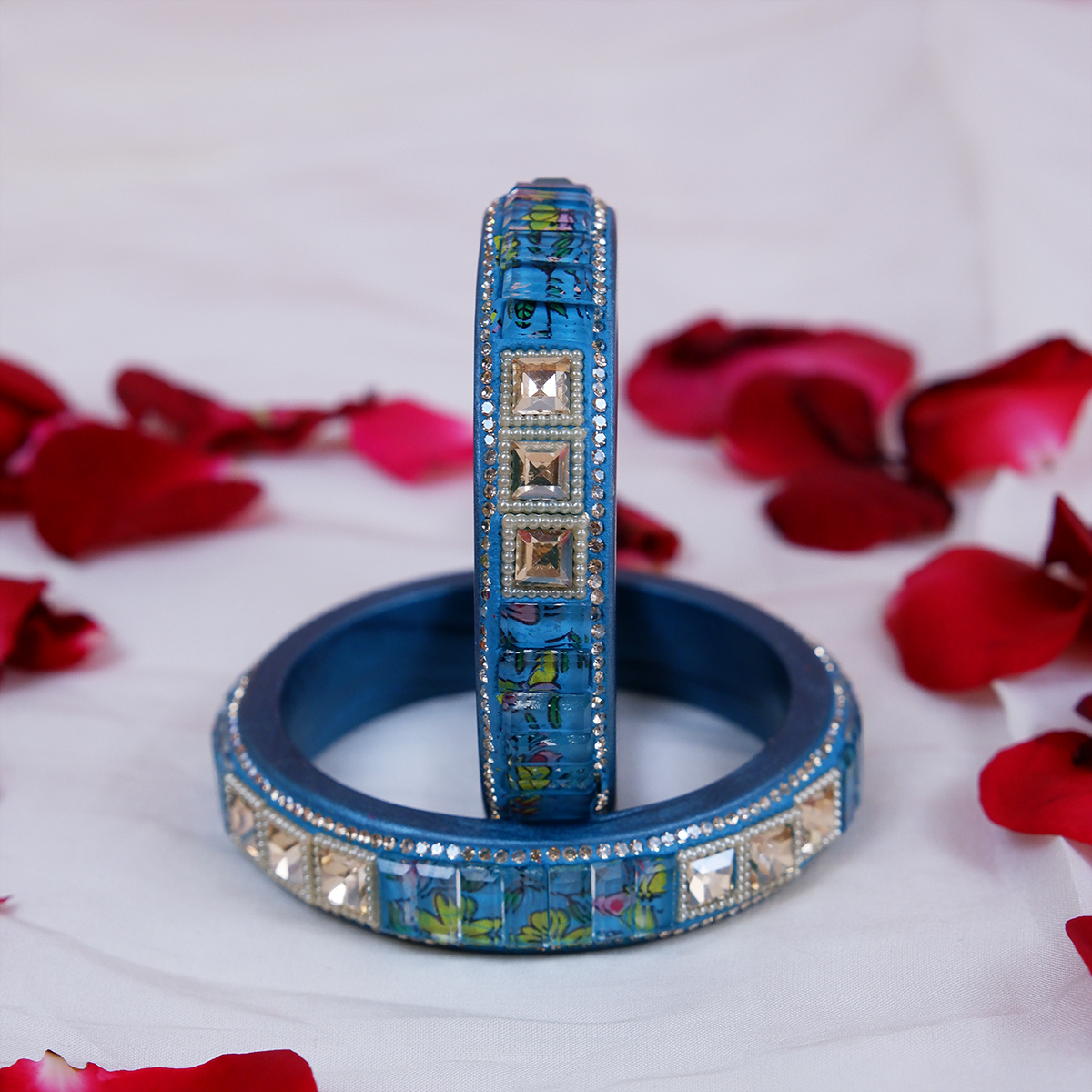 This vibrant floral wine laakh bangles set is adorned with delicate kundan stones & fine embellishments. Designed for today’s women who carries tradition with effortless grace. It adds a radiant festive charm to every look.
