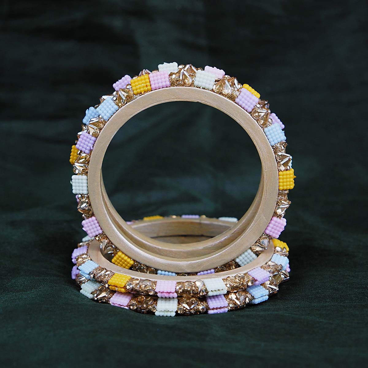 This vibrant laakh bangles set is adorned with delicate light multi colour fine embellishments. Designed for today’s women who carries tradition with effortless grace. It adds a radiant festive charm to every look.