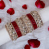This vibrant laakh bangles set is adorned with delicate fine embellishments. Designed for today’s women who carries tradition with effortless grace. It adds a radiant festive charm to every look.