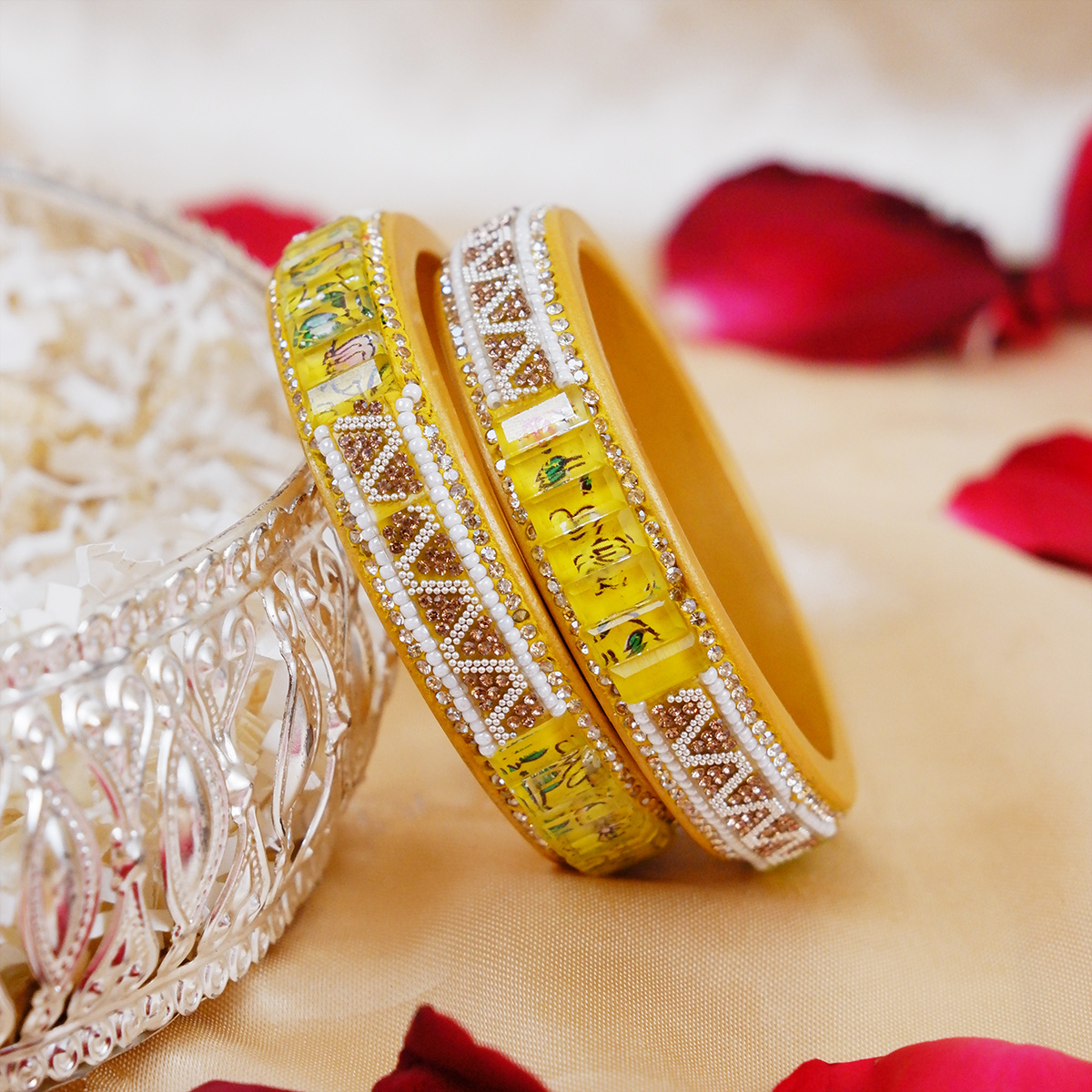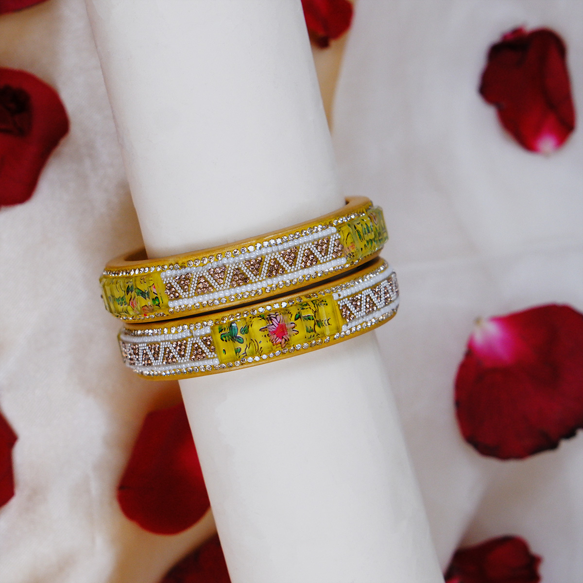 • Do not bend or apply pressure, as laakh (lac) jewelry is delicate.